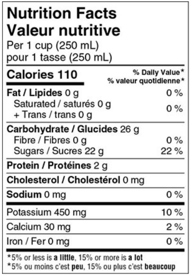 • Fully compliant Canadian Bilingual Nutrition Facts Tables.